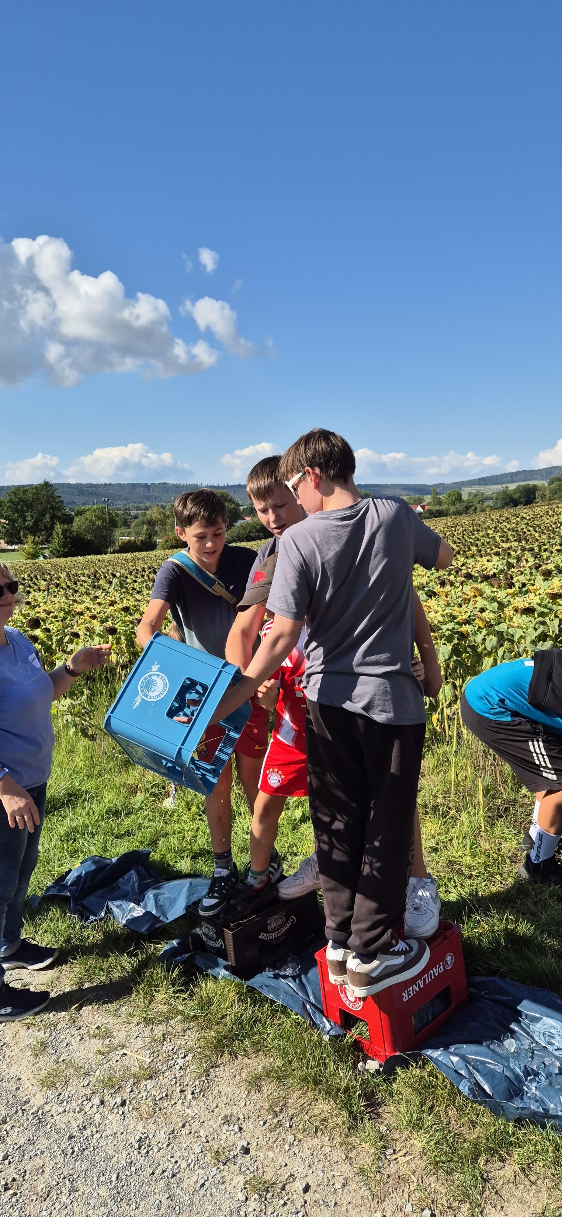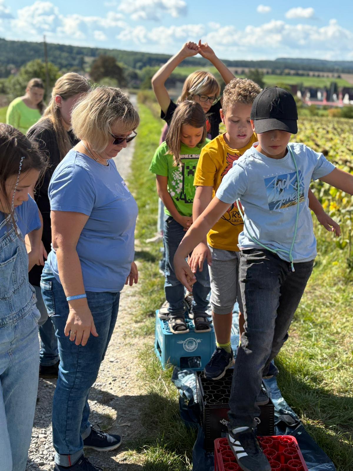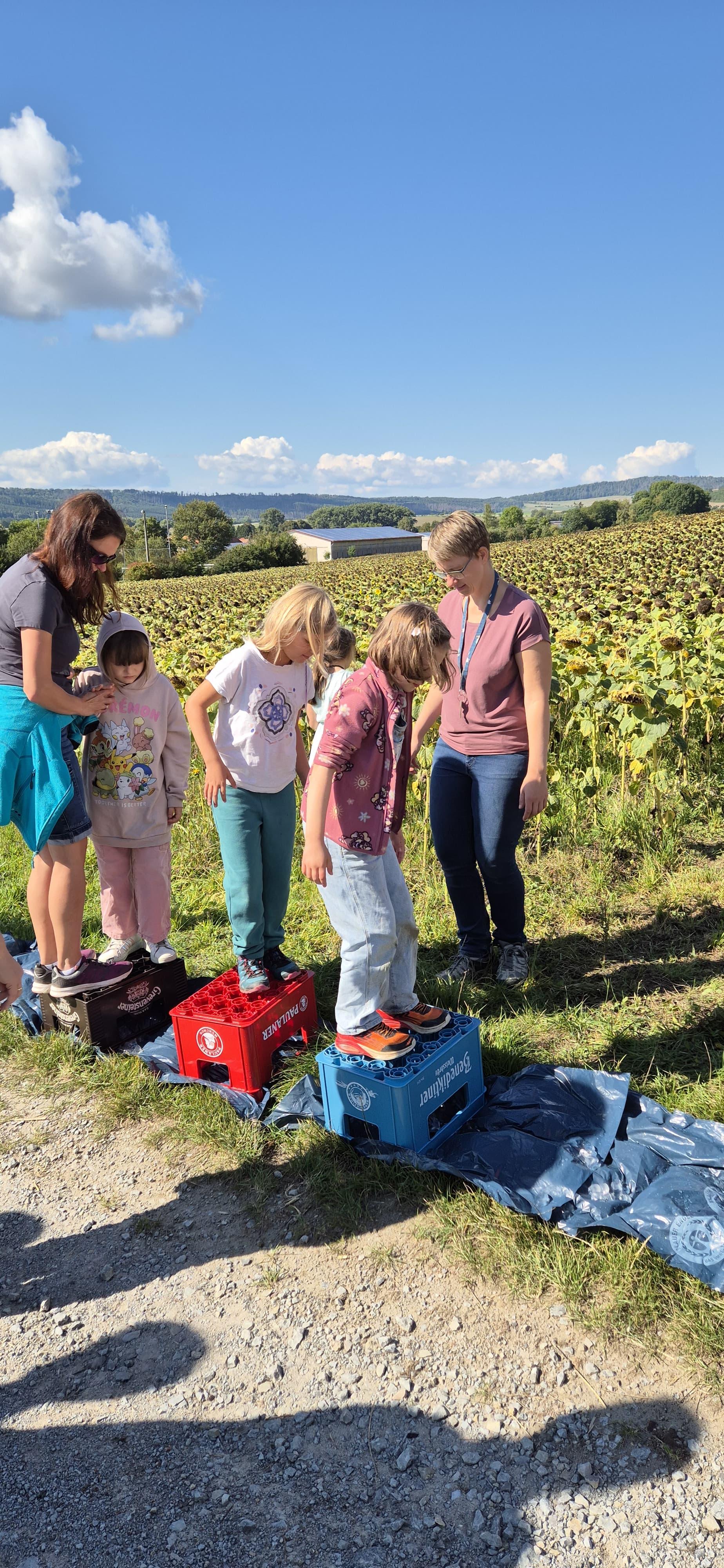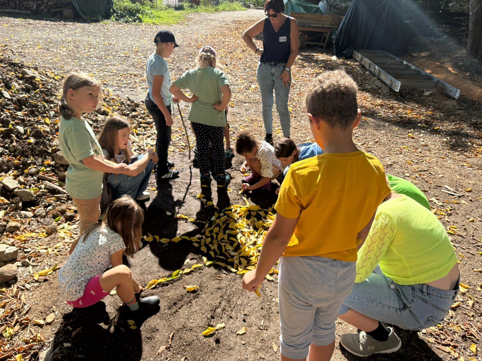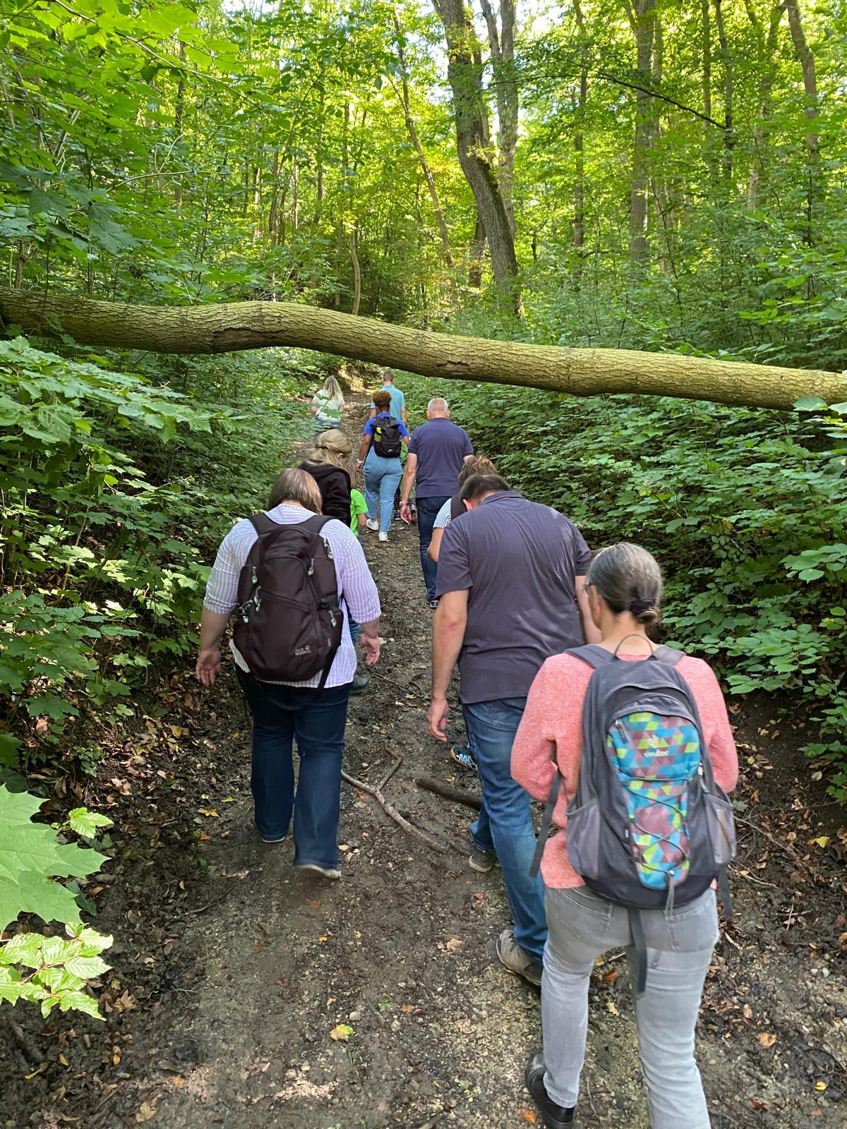 Nachdem auch die Tagesgäste am Schullandheim angekommen waren, begannen wir den Tag mit einem gemeinsamen Gebet. Anschließend brachen die Kinder in zwei Gruppen zu einer „Schöpfungswanderung“ auf.