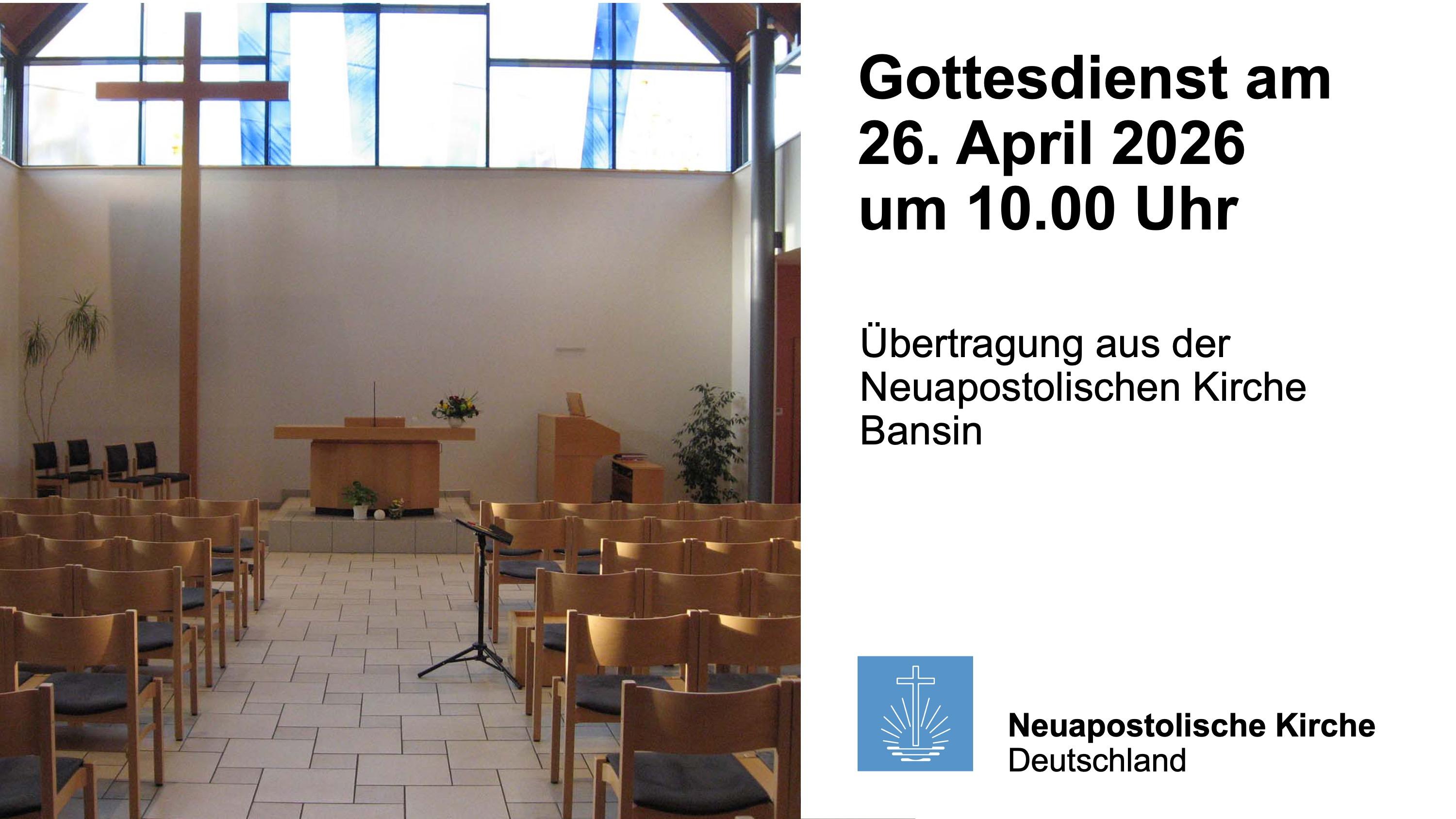 Videogottesdienste über YouTube sendet die Neuapostolische Kirche seit 2020. Sie richten sich an die Öffentlichkeit und bieten einen Einblick in den gottesdienstlichen Ablauf. Jeder ist herzlich eingeladen, einen Gottesdienst in einer der über 1.400 Ortsgemeinden mitzufeiern.