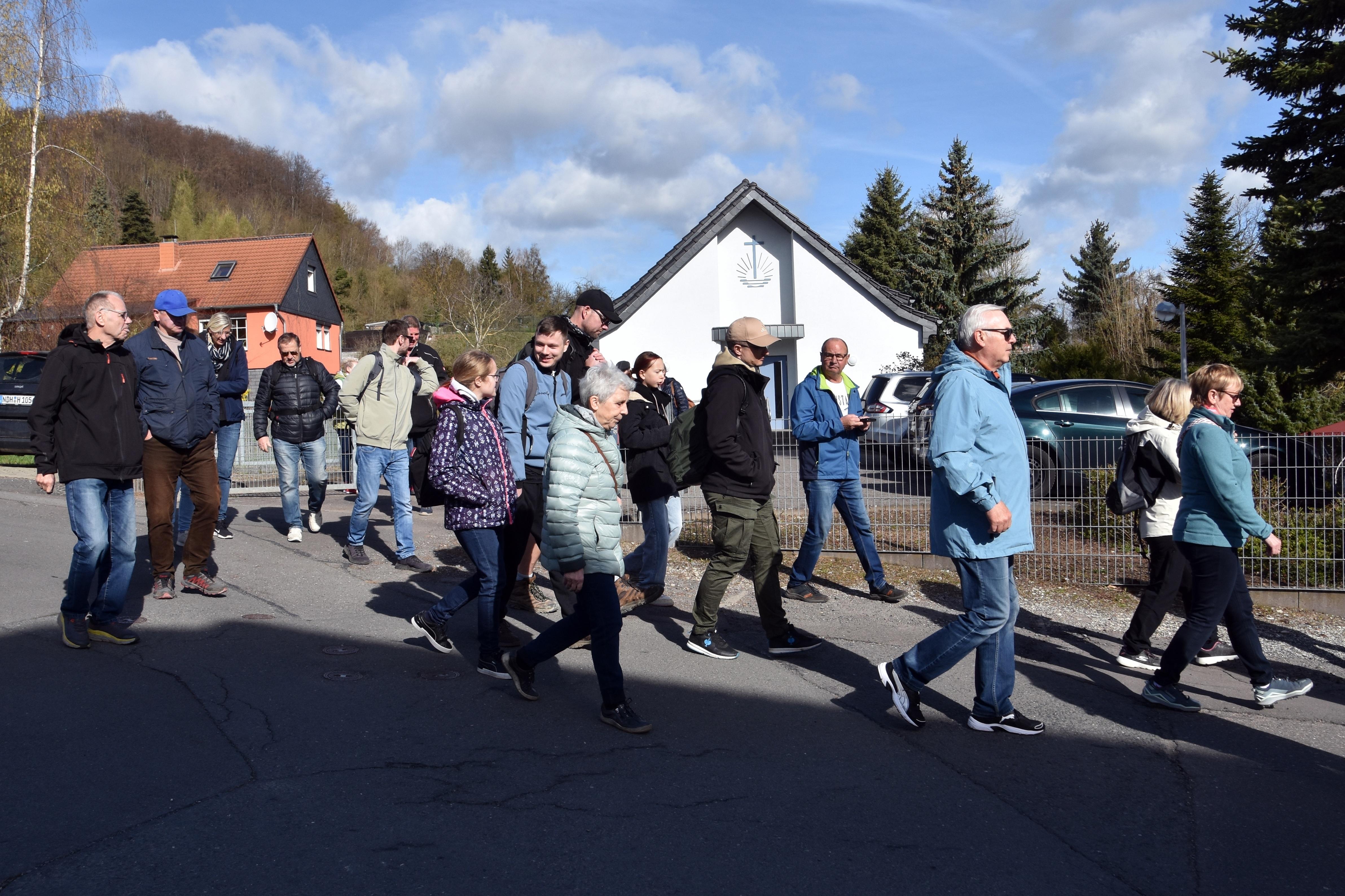 Von dort aus startete eine bunt gemischte Truppe aus Jung und Alt und begab sich auf einen Rundweg um Bleicherode herum.